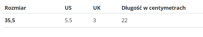Rozmiar | US | UK | Długość w centymetrach |