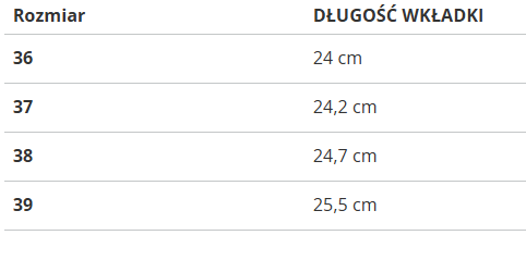 Rozmiar | DŁUGOŚĆ WKŁADKI |