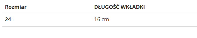 Rozmiar | DŁUGOŚĆ WKŁADKI |