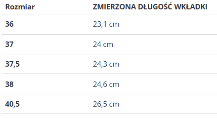 Rozmiar | ZMIERZONA DŁUGOŚĆ WKŁADKI |