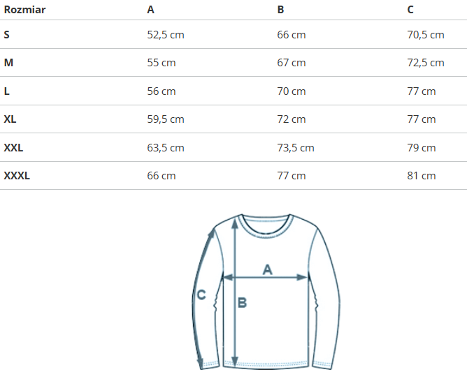 - UWAGA: bluza wypada mniejsza - sugerujemy wybór większego rozmiaru (proszę sprawdzać tabelę z wymiarami).