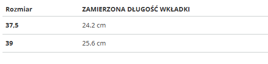 RozmiarZAMIERZONA DŁUGOŚĆ WKŁADKI