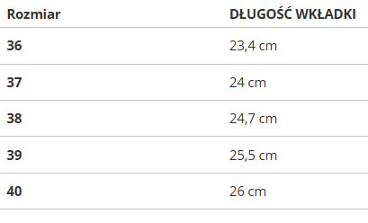 RozmiarDŁUGOŚĆ WKŁADKI