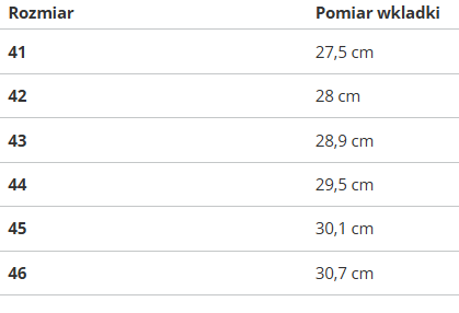 | Rozmiar | Pomiar wkladki |