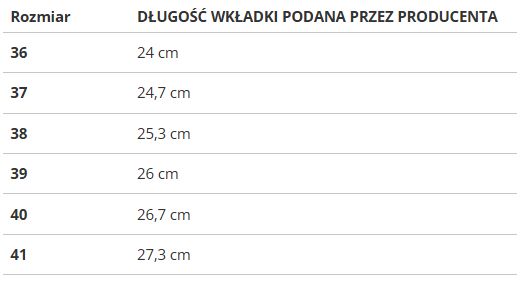 RozmiarDŁUGOŚĆ WKŁADKI PODANA PRZEZ PRODUCENTA