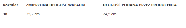 RozmiarZMIERZONA DŁUGOŚĆ WKŁADKIDŁUGOŚĆ PODANA PRZEZ PRODUCENTA