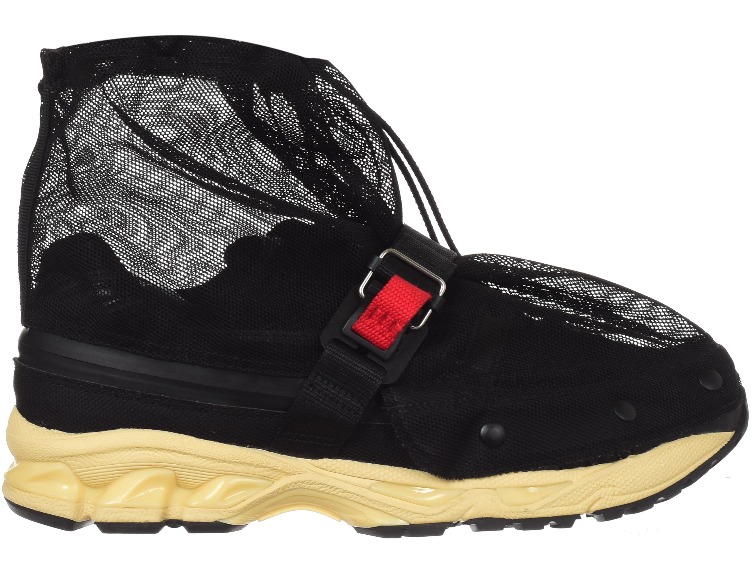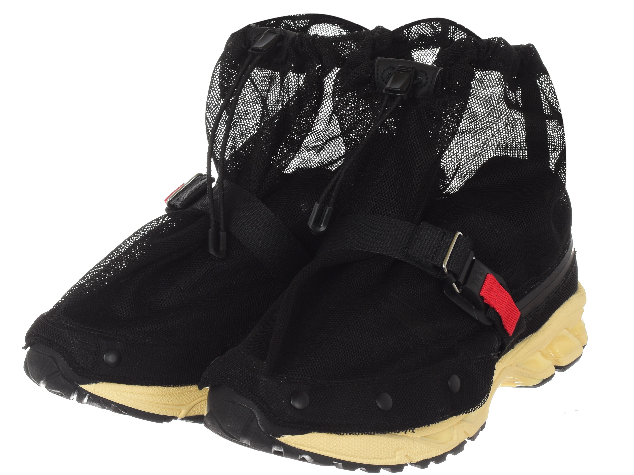 Konstrukcja: Wiele wersji tej kolaboracji zawiera unikatowe systemy sznurowania, a także dodatkowe, techniczne elementy, które podkreślają ich outdoorowy i limitowany charakter (np. zewnętrzna siatka, widoczna na zdjęciu, zwiększająca look techwear).