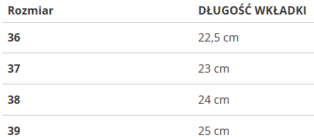 Rozmiar | DŁUGOŚĆ WKŁADKI |