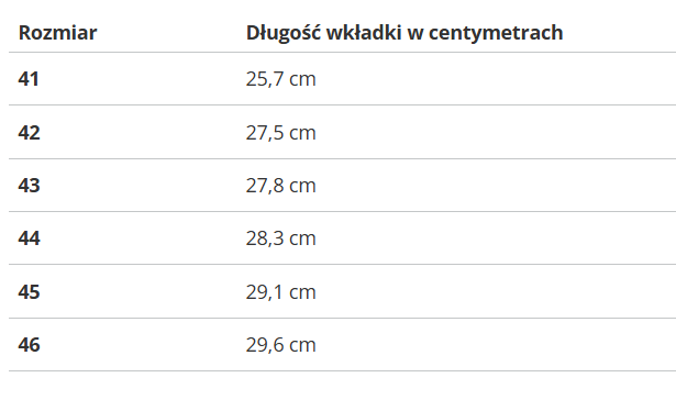 RozmiarDługość wkładki w centymetrach