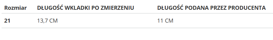 RozmiarDŁUGOŚĆ WKLADKI PO ZMIERZENIUDŁUGOŚĆ PODANA PRZEZ PRODUCENTA