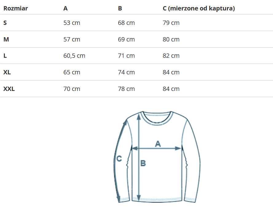Rozmiar | A | B | C (mierzone od kaptura) |