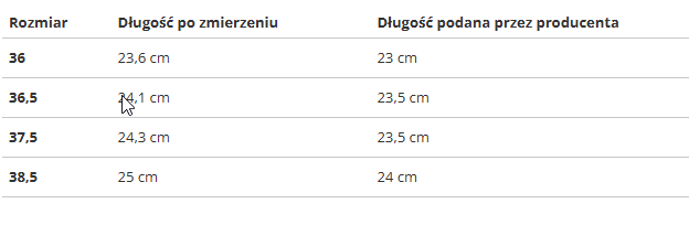 RozmiarDługość po zmierzeniuDługość podana przez producenta