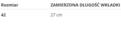 | Rozmiar | ZAMIERZONA DŁUGOŚĆ WKŁADKI |