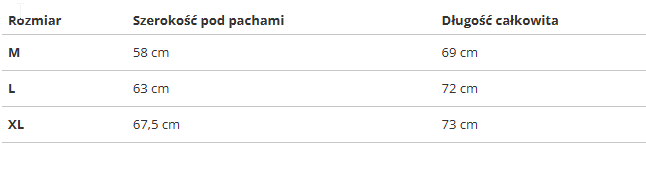 | Rozmiar | Szerokość pod pachami | Długość całkowita |