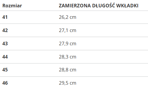 RozmiarZAMIERZONA DŁUGOŚĆ WKŁADKI
