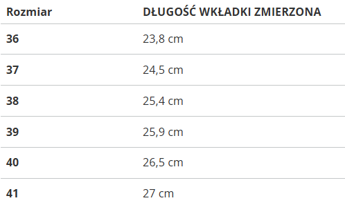 | Rozmiar | DŁUGOŚĆ WKŁADKI ZMIERZONA |