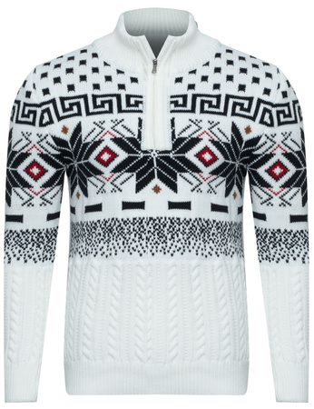 SWETER MĘSKI  Z PÓŁGOLFEM - LORR&MEN 2 BIAŁY ŚWIĄTECZNY