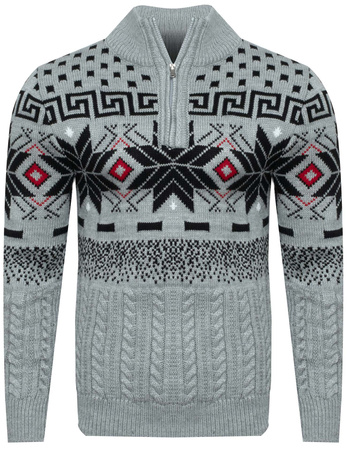 SWETER MĘSKI Z PÓŁGOLFEM - LORR&MEN 5 SZARY - ŚWIĄTECZNY