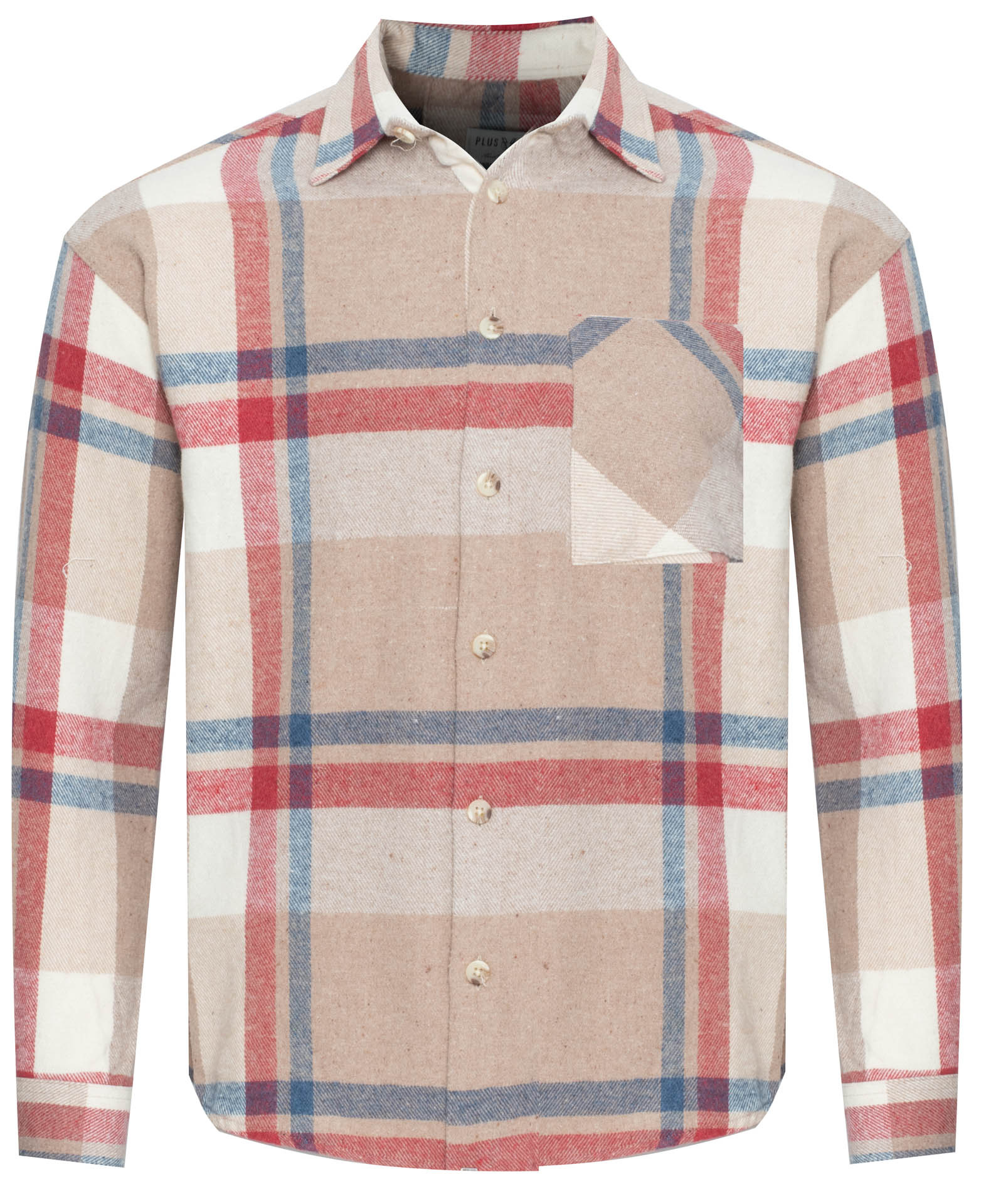 KOSZULA MĘSKA - CZERWONO-NIEBIESKO-BEŻOWY KRATKA