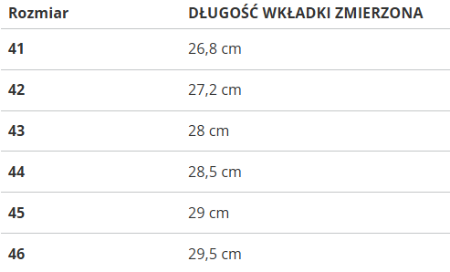 RozmiarDŁUGOŚĆ WKŁADKI ZMIERZONA