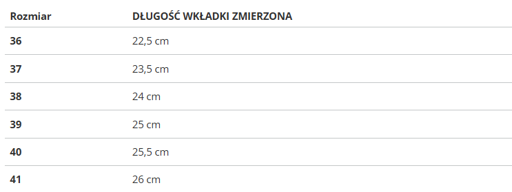 RozmiarDŁUGOŚĆ WKŁADKI ZMIERZONA