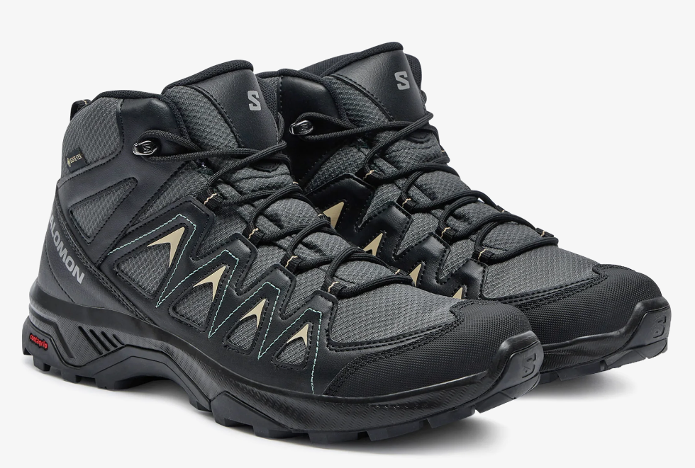 - Membrana GORE-TEX — wodoodporna i oddychająca, zapobiega przemakaniu stóp w wilgotnych warunkach.