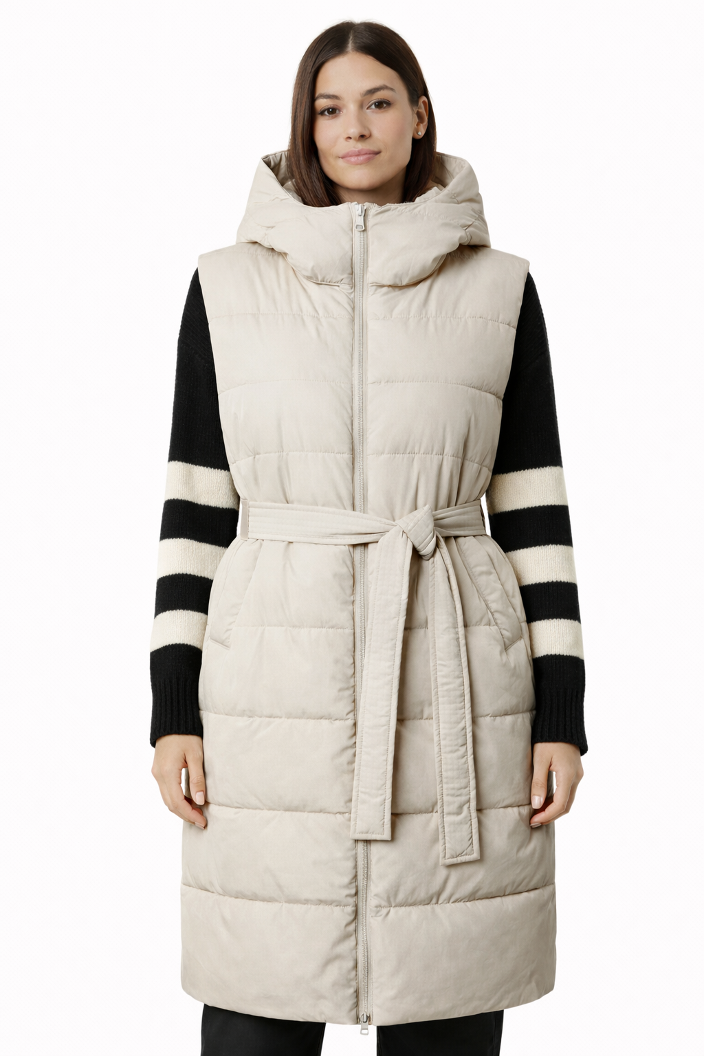 GUIDO MARIA KRETSCHMER - BEZRĘKAWNIK PUCHOWY DAMSKI Z KAPTUREM - HELENE VEST GMK-1023-11602 KREMOWY
