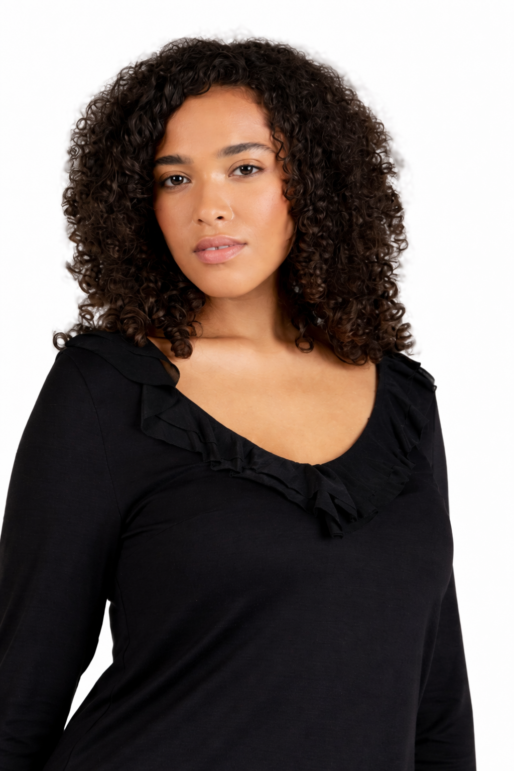 • Ozdobna falbanka na dekolcie.
